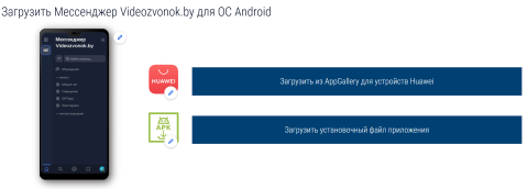 Приложение можно загрузить c AppGallery для устройств HUAWEI по ссылке : https://appgallery.huawei.com/app/C112964535 Кроме того можно загрузить установочный файл для любого устройства, работающего на ОС Android c официального сайта сервиса видеоконференций Videozvonok.by: https://vam.videozvonok.by/sites/default/files/app-release.apk -